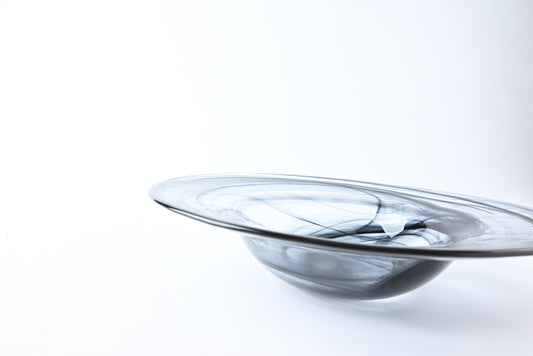 藍鼠色をベースに優美に描かれた黒い曲線が渦を表現し、柔らかい雰囲気のテーブルセッティングでは和陶器ならではの奥ゆかしげな印象をもたらします。